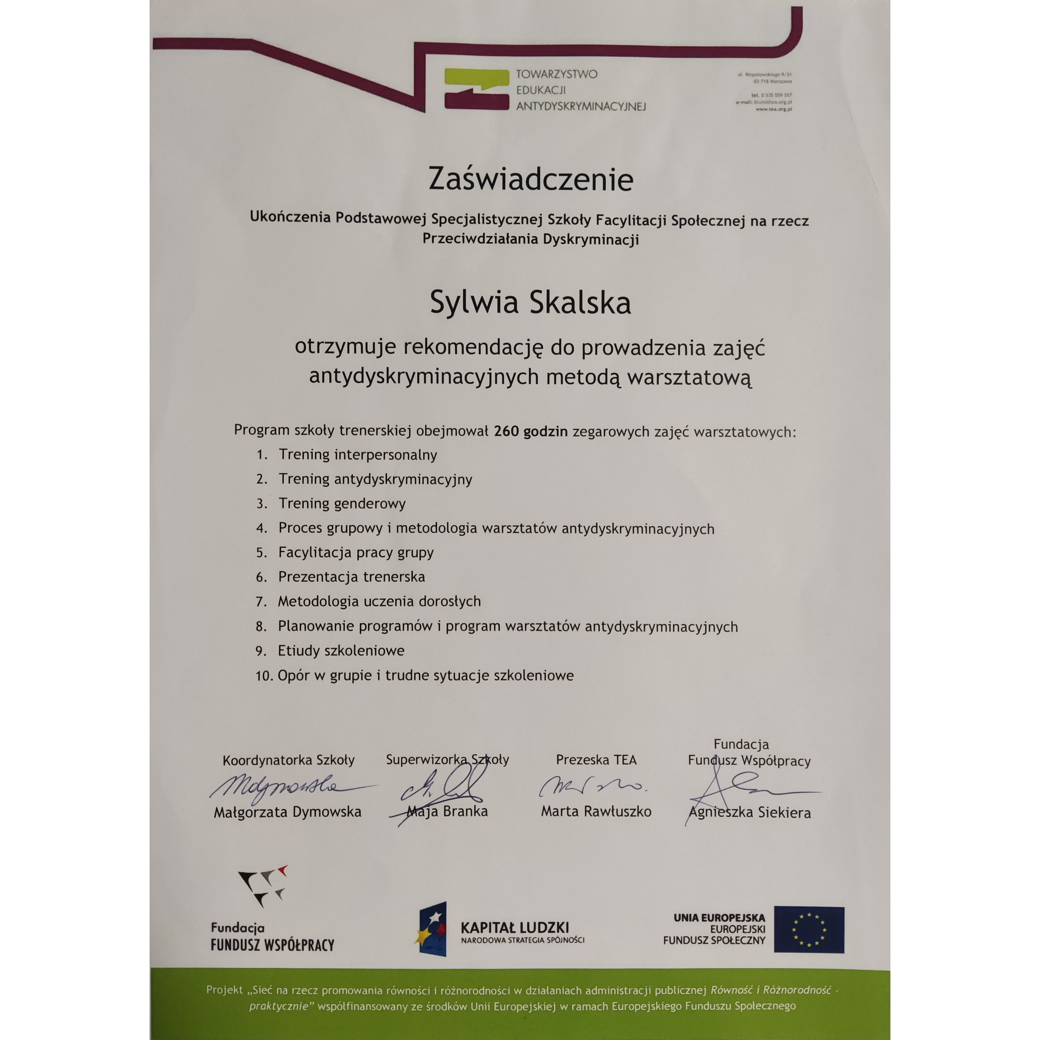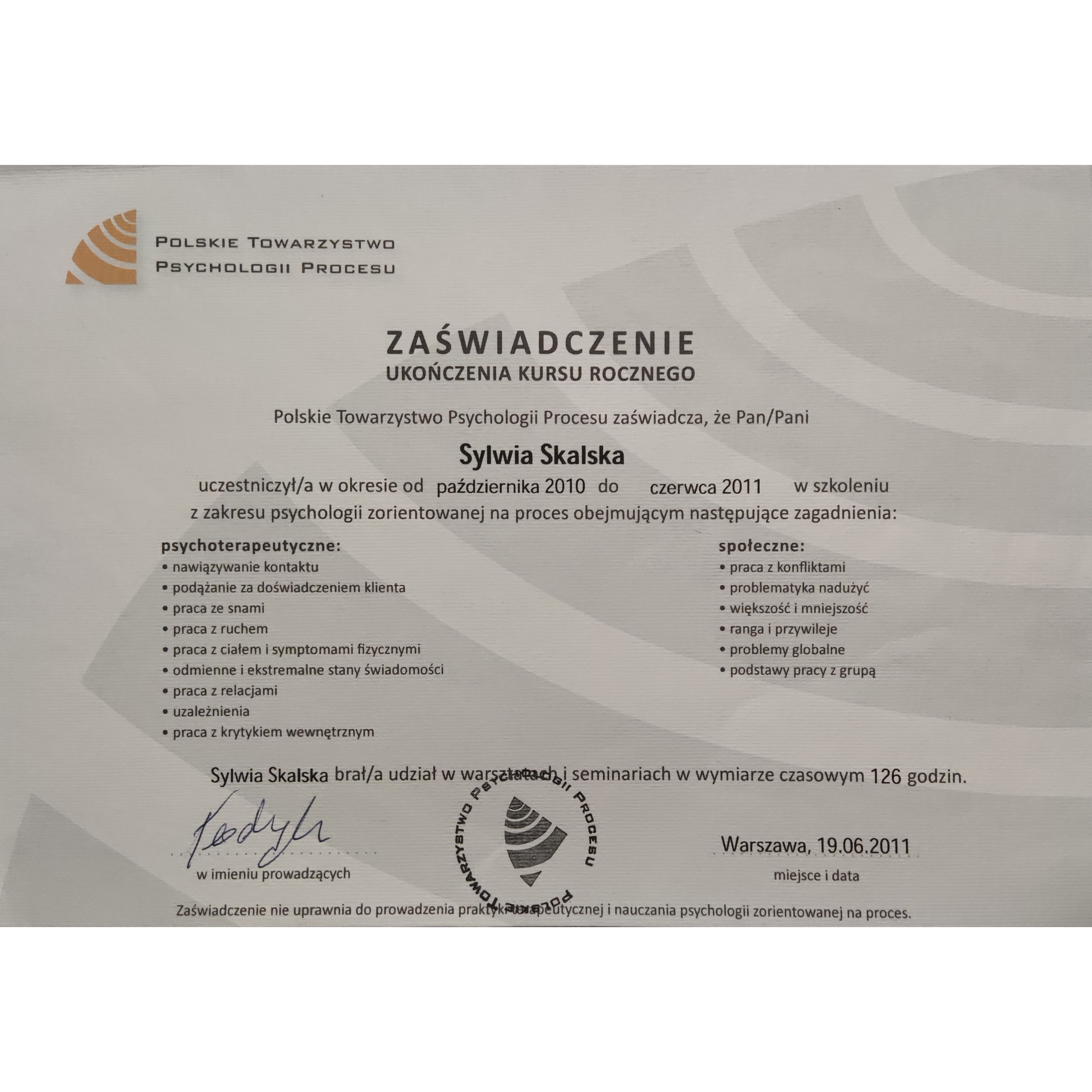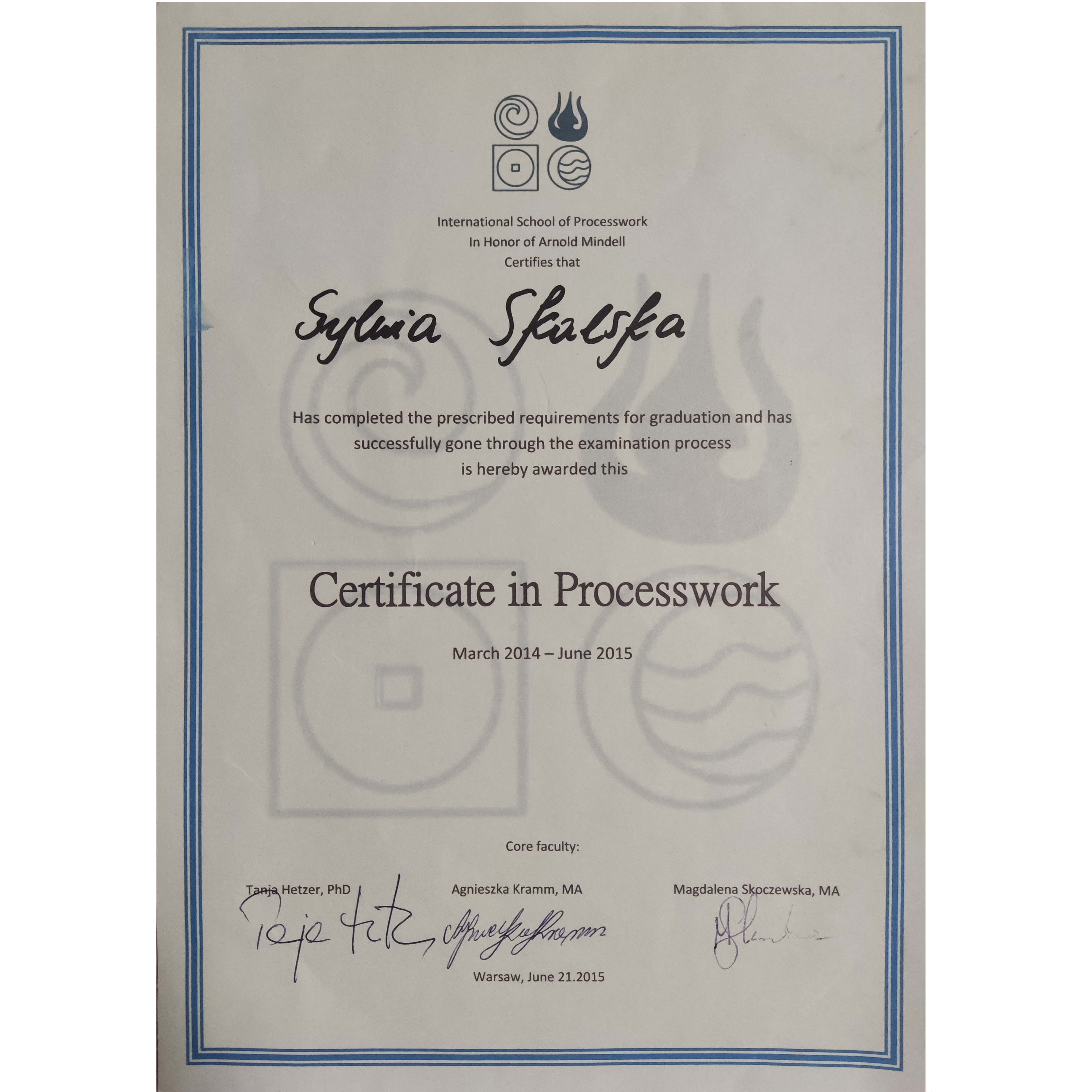 W 2015 r. uzyskałam uprawnienia w nurcie Psychologii Zorientowanej na Proces do pracy jako psychoterapeuta pod superwizją.